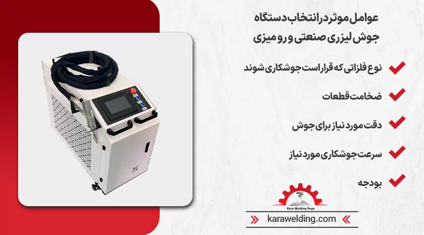 علاوه بر مواردی که ذکر شد، عوامل دیگری هم در انتخاب دستگاه جوش لیزری مناسب موثر هستند که در ادامه به چند مورد از آنها اشاره کرده ایم: