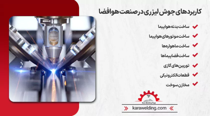 یکی از زمینههایی که از جوش لیزری استفاده میکنند، در صنعت هوافضا است. فناوری جوش لیزری در صنعت هوافضا توانسته جایگاه خاصی برای خود پیدا کند، چون قابلیتهای آن زیاد بوده و اهمیت ویژهای در این صنعت پیدا کرده است.